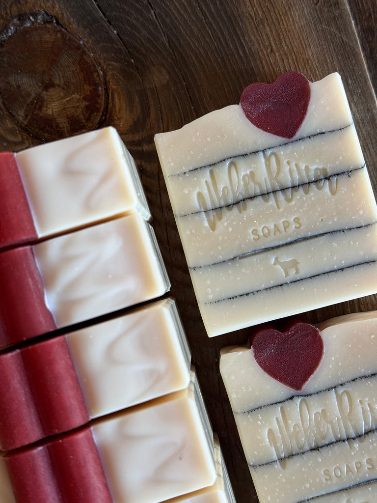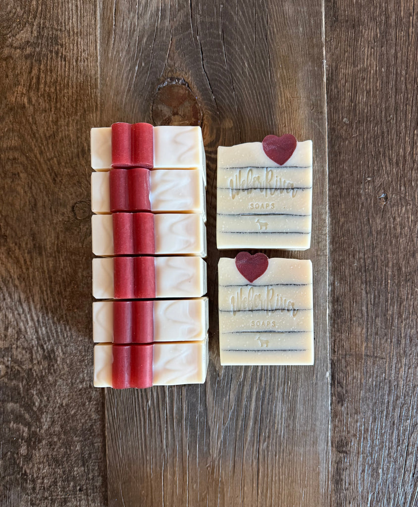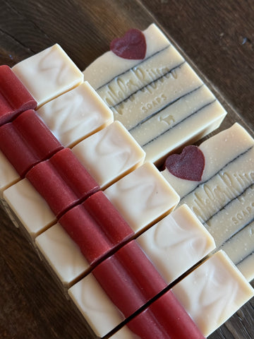 These are so cute for the upcoming Valentine's Day holiday. Designed to look like a love letter to your special someone. Scent notes of mandarin, lemon, orange blossom, magnolia, heliotrope, pink jasmine, soft vanilla, amber, and musk. Colored with zinc oxide with lines of activated charcoal powder. The heart is colored with mica and eco-glitter and is made of glycerin soap.